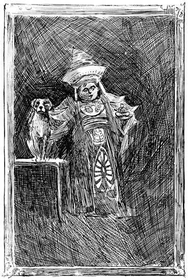 Это было нечто экстраординарное, и оно заставило меня задуматься. Балджер заметил это и радостно залаял, а затем бросился в мою спальню. Он исчез на несколько минут, а потом вернулся, неся в зубах пару восточных туфель, которые положил к моим ногам. Снова и снова он исчезал, возвращаясь каждый раз с каким-нибудь предметом одежды во рту. Через несколько мгновений он уже разложил на полу перед моими глазами полный восточный костюм; и поверьте мне, дорогие друзья, это был тот самый костюм, который я носил в своих последних путешествиях по далеким землям, когда мы с ним потерпели крушение на острове Гогула, в Стране круглых тел[3]. Что всё это могло значить?
