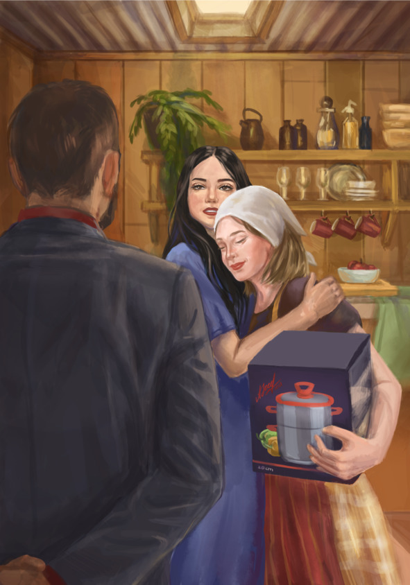 На кухне у МирандыИз техники гирлянды:Есть тостер,Миксер, блендер,Конечно, кофеварка,Помимо мультиварки,Духовка, пароварка,Стоит электрочайник,А рядом круглый пряник.И вот, однажды в двериСтучится к ней Этери:– Моя сестра ТамараМечтает о подарке,А я не знаю дажеЧто значит «пароварка», —И слёзы утирает.– Не плачь, Этери, ну же!Подарок, что так нуженТвоей сестре ТамареЕсть у меня в амбаре.Попей со мною чаю,Садись, я угощаю, —Соседскую девчушкуМиранда утешает.Увидев то, что раньшеСчитала невозможным,Пришла в восторг Этери:– Я тоже так хочу!
