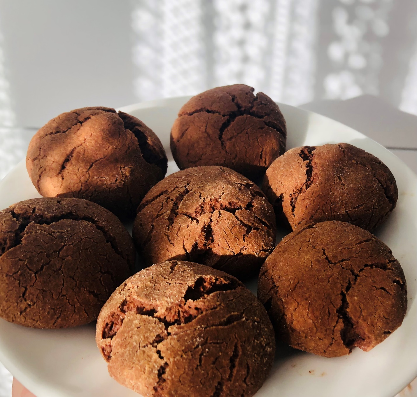 Растереть сливочное масло комнатной температуры с сахаром и какао. Добавить яйцо, муку и разрыхлитель. Скакать равными порциями. Обвалять в корице с сахарной пудрой. Слегка приплюснуть каждую порцию.