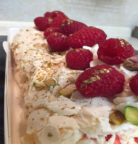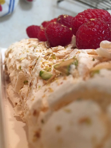 Меренговый рулет с фисташкой и малиной