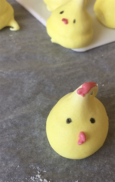 На готовые безе можно нанести рисунок айсингом другого цвета, кондитерским маркером и снова досушить