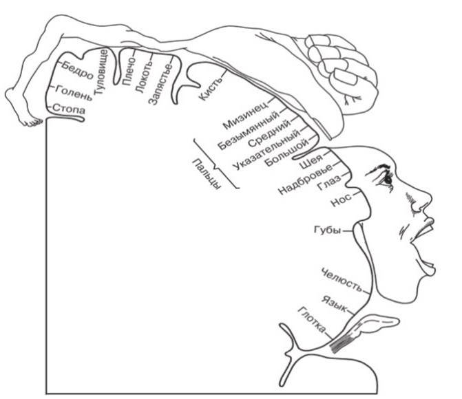 Рис. 10. Проекция частей тела человека на предцентральную извилину