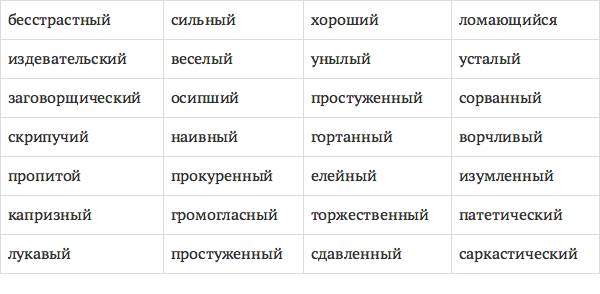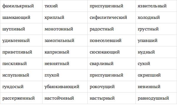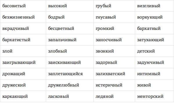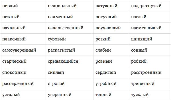 Задание 5. Составьте дома максимально полный список отрицательных, положительных и нейтральных характеристик тона и голоса.