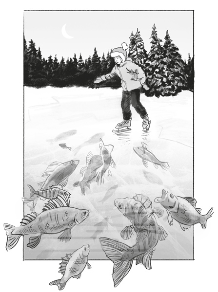 Но самое удивительное и необыкновенное из моих ранних воспоминаний – это каток на круглом лесном озере, где под прозрачным зеленоватым льдом в черной стылой воде сонно колышут плавниками золотые рыбки. Я пробую лед – делаю неуверенный шаг крохотной ногой, обутой в белый конечек, и тут же теряю равновесие, но рядом тихо скользит кто-то большой и сильный и сразу подхватывает меня за шиворот и аккуратно ставит, не давая упасть. Было ли это на самом деле или приснилось мне в счастливом сне? А может быть, я прочла это в книге или увидела в кино?