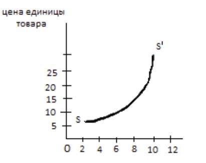 Рис. 8. Вид кривой эластичного и неэластичного предложения