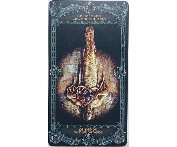 Изображение Аркана Повешенный в «алхимической» колоде сразу даёт отсылку к фильмам «Мумия» (части 1 и 2). Имхотеп, главный жрец фараона, оживает после того, как молодая учёная прочитала вслух отрывок из Книги Мёртвых. После этого начинаются опасные погони в поисках средства для успокоения воскресшего Имхотепа. Пока, наконец, герои не узнают о Книге Живых, чтение отрывка из которой отнимает жизнь у воскрешённого из мёртвых.