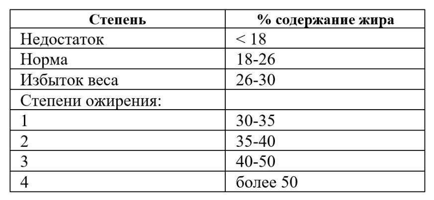 Классификация ожирения исходя из процентного содержания жира в организме женщин среднего возраста