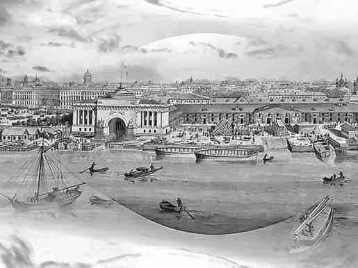 Фрагмент панорамы Тозелли. Адмиралтейство с еще открытым двором