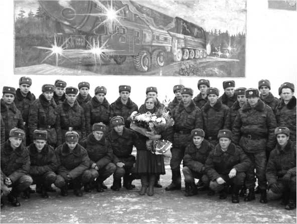 Л. В. Родионова с солдатами-ракетчиками Балабановского гарнизона РВСН