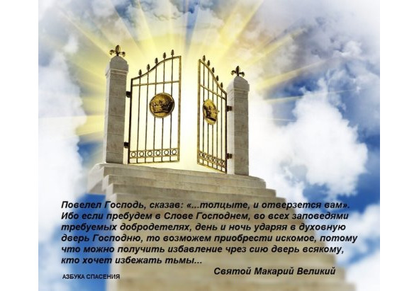Если пребудем в Слове Господнем… день и ночь ударяя в духовную дверь Господню, то возможем приобрести искомое, потому что можно получить избавление чрез сию дверь всякому, кто хочет избежать тьмы. Святой Макарий Великий