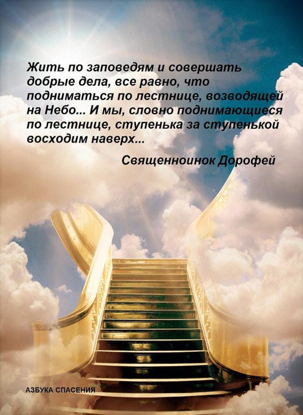 Жить по заповедям и совершать добрые дела, все равно, что подниматься по лестнице. Поэтому и называются духовной лестницей, возводящей на небо… Священноинок Дорофей