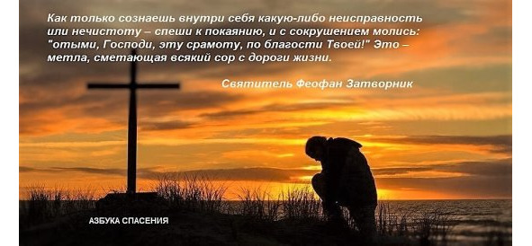 Как только сознаешь внутри себя какую-либо неисправность или нечистоту – спеши к покаянию, и с сокрушением молись: Это – метла, сметающая всякий сор с дороги жизни. отыми, Господи, эту срамоту, по благости Твоей! Святитель Феофан Затворник