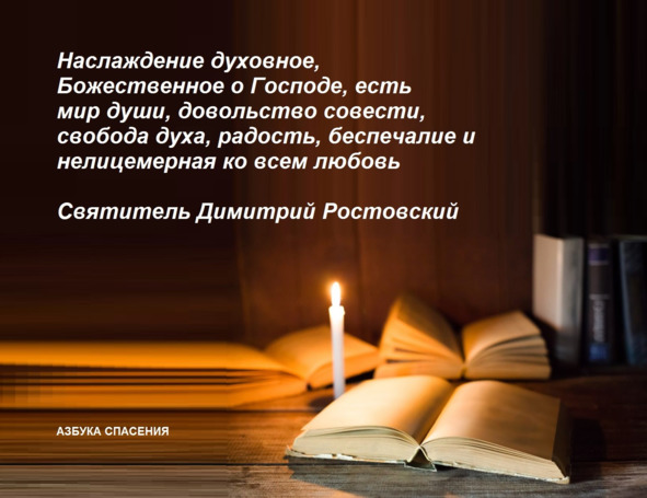 Наслаждение духовное, Божественное о Господе, есть мир души, довольство совести, свобода духа, радость, беспечалие и нелицемерная ко всем любовь. Святитель Димитрий Ростовский