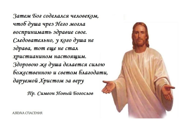 Все Божественное Писание, Ветхое и Новое, руководит естественно больное человеческое естество к Иисусу Христу, Который есть единственный Врач душ и телес наших. Преподобный Симеон Новый Богослов