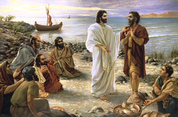 Когда же они обедали, Иисус говорит Симону Петру: Симон Ионин! любишь ли ты Меня больше, нежели они? Петр говорит Ему: так, Господи! Ты знаешь, что я люблю Тебя. Иисус говорит ему: паси агнцев Моих. Еще говорит ему в другой раз: Симон Ионин! любишь ли ты Меня? Петр говорит Ему: так, Господи! Ты знаешь, что я люблю Тебя. Иисус говорит ему: паси овец Моих. Говорит ему в третий раз: Симон Ионин! любишь ли ты Меня? Петр опечалился, что в третий раз спросил его: «любишь ли Меня?» и сказал Ему: Господи! Ты все знаешь; Ты знаешь, что я люблю Тебя. Иисус говорит ему: паси овец Моих.