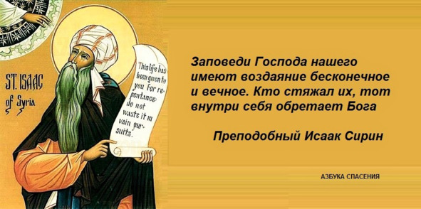Заповеди Господа нашего имеют воздаяние бесконечное и вечное, так как в тех, кто исполняет их, они вселяют Жизнь Бессмертную и подают великие блага … Преподобный Исаак Сирин