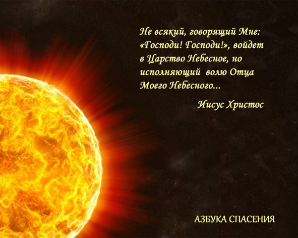 Не всякий, говорящий Мне: «Господи! Господи!», войдет в Царство Небесное, но исполняющий волю Отца Моего Небесного. Многие скажут Мне в тот день: «Господи! Господи! не от Твоего ли имени мы пророчествовали? и не Твоим ли именем бесов изгоняли? и не Твоим ли именем многие чудеса творили?» И тогда объявлю им: «Я никогда не знал вас, отойдите от Меня, делающие беззаконие» (Мф.7:21—23).