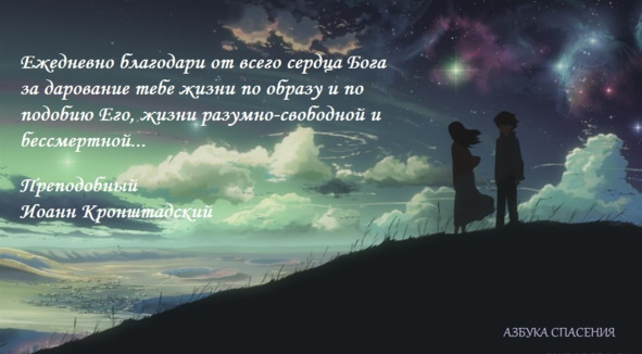 Ежедневно благодари от всего сердца Бога за дарование тебе жизни по образу и по подобию Его, жизни разумно-свободной и бессмертной. Особенно благодари за то, что Он тебя падшего в вечную смерть восстановил и направил опять к жизни, и не простым действием всемогущества, ибо это несообразно было бы с правосудием Его, а даровавши в выкуп за нас Единородного Сына Своего, пострадавшего и умершего за нас; благодари еще за то, что Он тебя ежедневно, волею чрез грехи падающего из жизни в смерть, бесчисленное множество раз – снова дарит жизнью за то только, что ты от сердца скажешь: согреших, Отче, на небо и пред Тобою (Лк.15:18)!