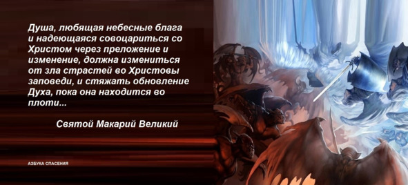 Душа, любящая небесные блага и надеющаяся совоцариться со Христом через преложение и изменение, должна измениться от зла страстей во Христовы заповеди, и стяжать обновление Духа, пока она находится во плоти. Святой Макарий Великий