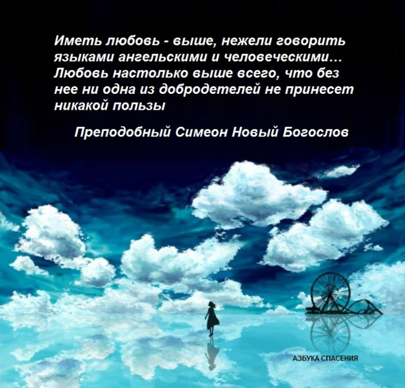 Иметь любовь – выше, нежели говорить языками ангельскими и человеческими… Любовь настолько выше всего, что без нее ни одна из добродетелей не принесет никакой пользы. Преподобный Симеон Новый Богослов