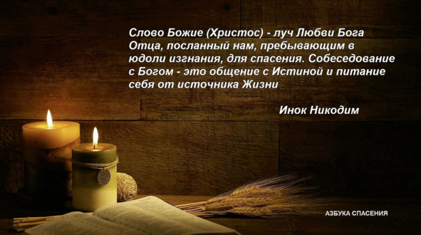 Слово Божие (Христос) – луч Любви Бога Отца, посланный нам, пребывающим в юдоли изгнания для спасения. Собеседование с Богом – это общение с Истиной и питание себя от источника Жизни. Словом Божиим очищается ум от страстей и мрака заблуждений. Им обновляется и приуготовляется душа к новой нетленной жизни в Царствии Небесном. Кто нерадит об очищении себя Словом Божиим, омертвелого от рабства греху, тот не имеет жизни здесь и не будет иметь ее там. хлебом живым