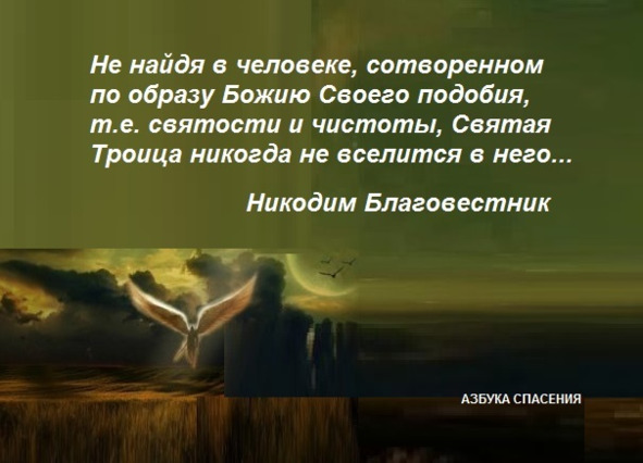 Кто слышит и слушается Слова Божия – Христа, и живет по Его заповедям, тот рождается свыше вселением Божественной любви, которая есть ни что иное, как эликсир вечной жизни и удостоверение в спасении. …Кто любит Меня, тот соблюдет слово Мое, и Отец Мой возлюбит его, и Мы придем к нему и обитель у него сотворим. Кто же не слышит призывающий Глас Спасителя своего, но горделивое самолюбие ослепило его умные очи, тот имеет помраченную душу, не способную к вместить духовной любви, пока не отречется от соблазнов пагубного мира и не очистится от бесовских страстей преходящего века сего.