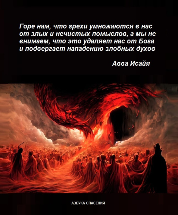 Душа, увлекаемая нечистыми помыслами мерзостна Христу. Если нечистый помысл найдет себе вход в душу твою, он представляется ей сладостным и занимает ее собой, чтобы умертвить, и делается лукавый помысл как бы сетью в душе, если не будет прогнан молитвой, слезами, воздержанием и бдением.
