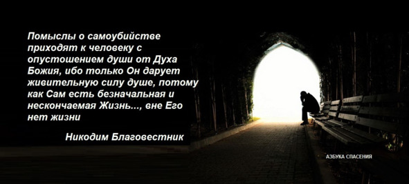 Бесы возбуждают среди вас ссору, разгорячают вас до того, что вы готовы избить друг друга, расстраивают и омрачают до того, что, мол, лучше повеситься, чем так жить. Если ты или кто-либо примет хоть на время эту мысль, то бесы с большей силой, с помощью других, более сильных бесов (седмь других, злейших себя, как сказано в Евангелии), будут стараться чаще и сильнее внедрить мысль о самоубийстве. Если человек не воспротивится этой дьявольской мысли всеми своими силами, а даст хоть некоторое согласие, то бесы по попущению Божию за страсти и нераскаянность, и злобу могут задушить человека, дают веревку или даже полотенце и помогут покончить с собой…