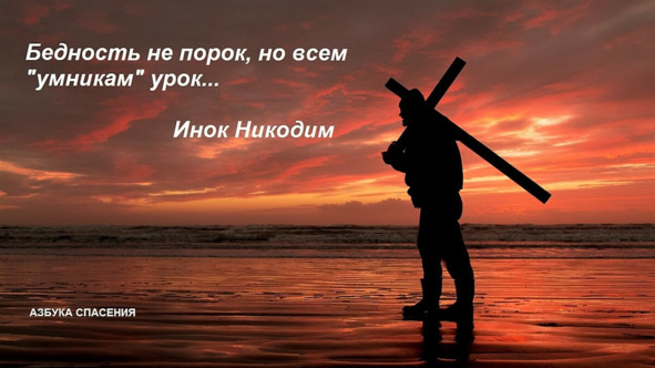 Если печалит бедность, то уничижается Божие законоположение, в котором сказано: Посему если не держимся Божия законоположения, то, как очевидно, не пожелаем и бедности, а если бедность приемлем с благодарностью, то покоряемся предписаниям закона. блажени нищии духом, яко тех есть Царство Небесное (Мф.5:3).