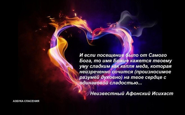 И если посещение было от Самого Бога, то имя Божие кажется твоему уму сладким, как капля меда, которая неизреченно сочится (произносимое разумей духовно) на твое сердце с одинаковой сладостью… Неизвестный Афонский Исихаст