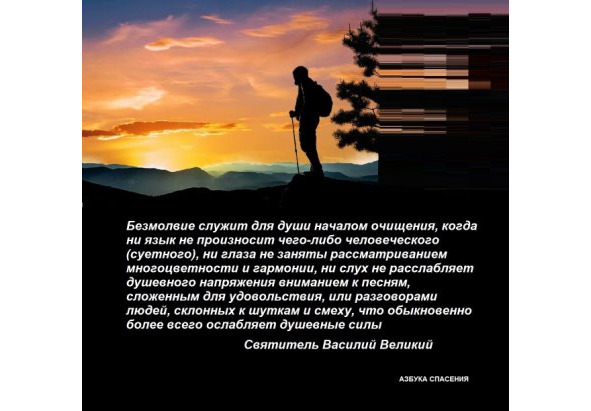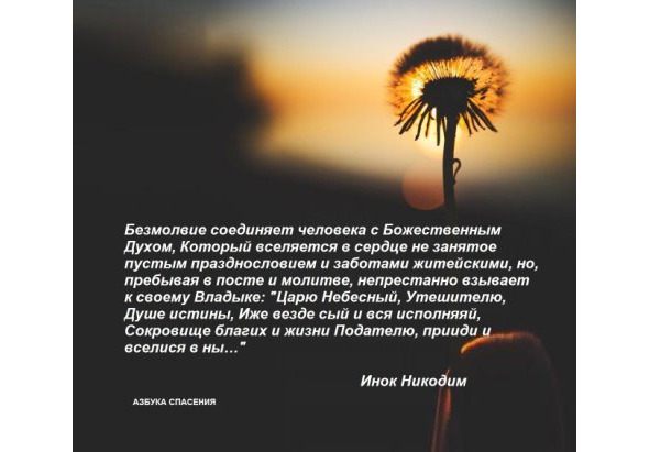Безмолвие есть остановка ума и мира, забвение низших, тайное ведение высших, отложение мыслей – это есть истинное делание. Святитель Григорий Богослов