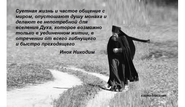 Что же касается человеческого общения, то здесь нам дана заповедь о непразднословии, которая снимает все вопросы, и которую должны исполнять все христиане, следующие за своим Владыкой: К тому же, самая Первая и Главная заповедь с которой должны начинать свое спасение все христиане, понуждает нас любить Бога: А эту заповедь невозможно исполнить пребывая в общении с людьми. Почему? Ибо от избытка сердца говорят уста. Добрый человек из доброго сокровища выносит доброе, а злой человек из злого сокровища выносит злое. Говорю же вам, что за всякое праздное слово, какое скажут люди, дадут они ответ в день суда: ибо от слов своих оправдаешься, и от слов своих осудишься (Мф.12:34—37). Возлюби Господа Бога твоего всем сердцем твоим, и всею душею твоею, и всем разумением твоим, и всею крепостию твоею, – вот первая заповедь! (Мк.12:30).