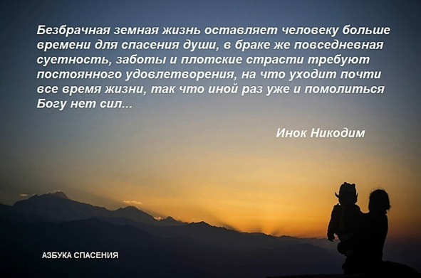 Безбрачная жизнь избирается произволением, борьбою со стремлениями падшего естества, обузданием тела подвигами доказывается искренность произволения… Святитель Игнатий (Брянчанинов)