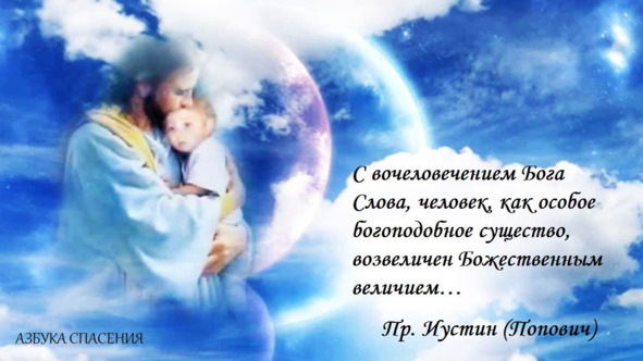 Православие – Православие Богочеловеком. И мы, православные, исповедуя Богочеловека, через Богочеловека исповедуем христообразие человека, божественное происхождение человека, божественное величие человека, а этим и божественную значимость человеческой личности. В действительности, борьба за Богочеловека – это борьба за человека. Не гуманисты, а люди православной, богочеловеческой веры и жизни борются за истинного человека, человека богообразного и христообразного.