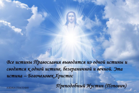 Все истины Православия выводятся из одной истины и сводятся к одной истине, безграничной и вечной. Эта истина – Богочеловек Христос… Православие – Православие Богочеловеком. И ничем другим и никем другим. Отсюда второе имя Православия – Богочеловечество. В нем ничего не бывает по человеку и от человека, но все приходит от Богочеловека и бывает по Богочеловеку. А это значит: основную, вечную истину жизни и мира человек переживает и сознает только с помощью Богочеловека, в Богочеловеке. И еще: всецелую истину о человеке, о цели и смысле его бытия, человек познает только через Богочеловека. Без Него и вне Его нет истинного человека, ибо человек является истинным только Богочеловеком и в Богочеловеке. Вне Его человек превращается в привидение, в чудовище, в бессмыслицу. И вместо человека вы находите лишь его остатки, обломки, прах. Поэтому истинное человечество только в богочеловечестве. И нет другого под небом.