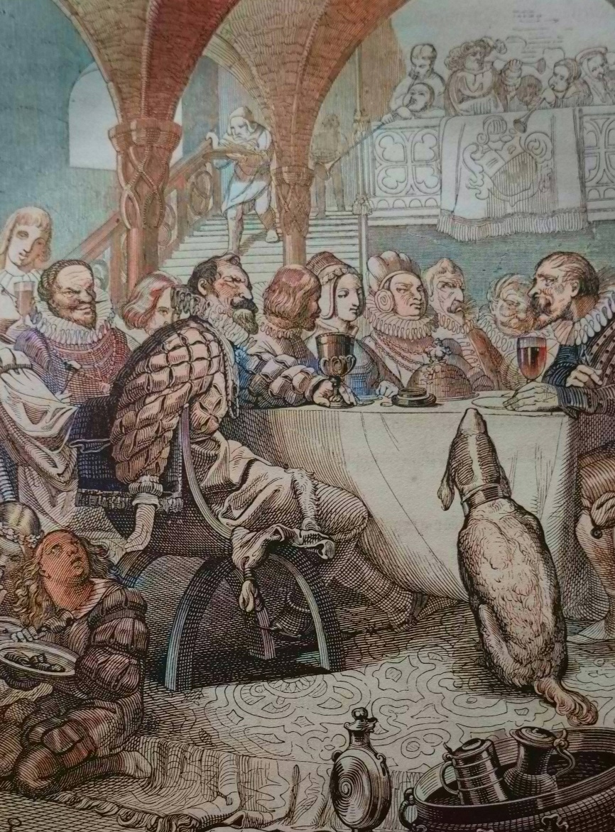 Ein reicher, reicher Graf vergeudete sein Gut und Habe. Er lebte königlich, hielt alle Tage offene Tafel. Wer bei ihm einsprach, Ritter oder Knappe, dem gab er drei Tage lang ein herrliches Bankett, und alle Gäste taumelten mit frohem Mut von ihm hinweg. Er liebte Brettspiel und Würfel, sein Hof wimmelte von goldgelockten Edelknaben, Läufern und Heiducken in prächtiger Livree, und seine Ställe nährten unzählige Pferde und Jagdhunde.