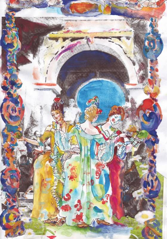 С наступлением злополучного дня выскочила она беспечно за ворота на свою лужайку, расстелила полотно, чтоб оно пропиталось утренней росой и холст хорошо отбелился на солнце. Как только она это всё сделала и оглядела со всех сторон работу, глядь – великолепное шествие рыцарей и оруженосцев рысью движется в её сторону. Она ещё не успела привести себя с утра в порядок, потому укрылась за кустом диких роз, который стоял в это время в самом цвету, и стала жадно следить за роскошной кавалькадой. Самый прекрасный рыцарь, молодой стройный человек в шлеме с поднятым забралом подъехал к кусту и заговорил мягким голосом:
