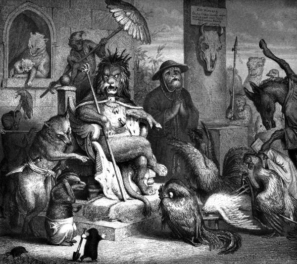В этих произведениях народного творчества лиса в ряду других животных обыкновенно олицетворяет собою хитрость и наклонность к обману; жертвою же ее проделок оказываются то кроткие ягнята, то простоватые медведи, то тупоумные ослы, то прожорливые волки и т. п.