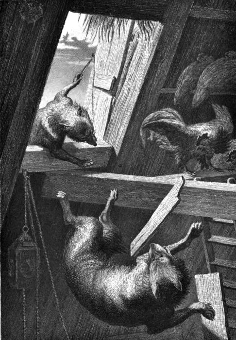 Улизнув от них, я направился к амбару. Там, к сожалению, я должен был оставить свою добычу: мне было тяжело с нею. Тут толпа потеряла меня из виду, но нашла каплуна. Поднимая его, патер заметил в амбаре волка; увидел его также и народ.