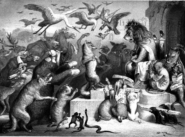 Тут уж и убедился лис, что дело кончено, что речи ему немного помогли. Сам король, поднявшись с трона, произнес над ним приговор. Перед глазами хищника вдруг промелькнул жалкий и позорный конец его. В это время его уже схватили и крепко связали.