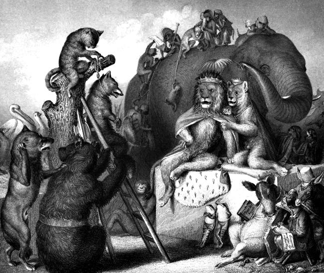 Королю неприятно стало, что его оставили вдруг столько рыцарей. Он увидел, что у лиса было довольно родни, которая удалилась теперь, будучи огорчена ожидавшею его смертью. Позвав одного из своих приближенных, он заметил ему: