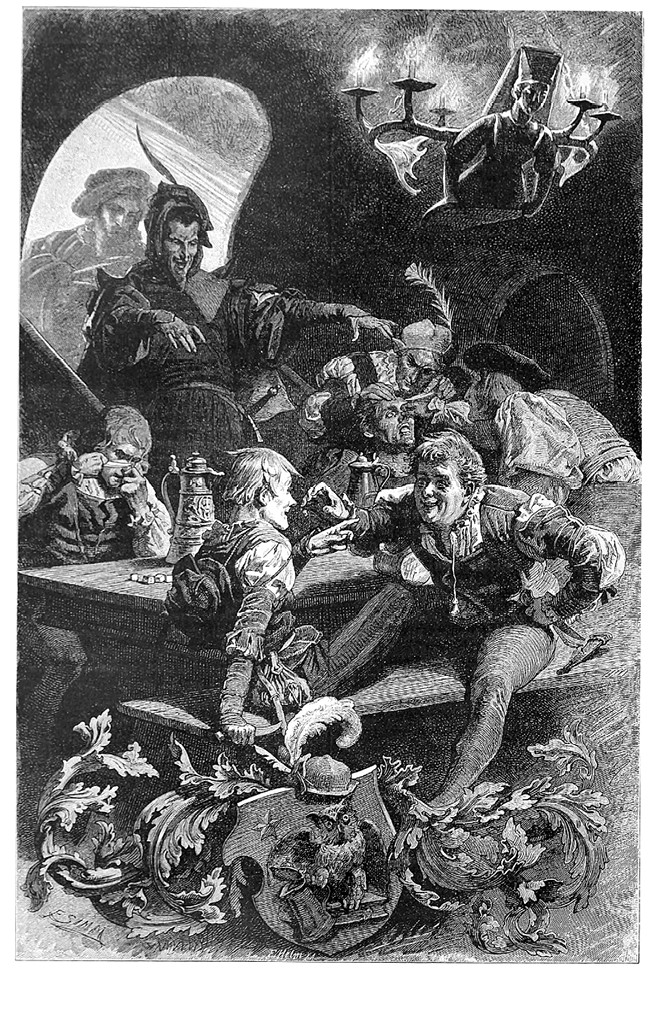 БрандерК чему бежать чужого дара?И вдалеке добро бывает рождено;Хоть немцу кровному француз совсем не пара,Но с радостью мы пьем французское вино.Зибель(видя, что Мефистофель приближается к нему)