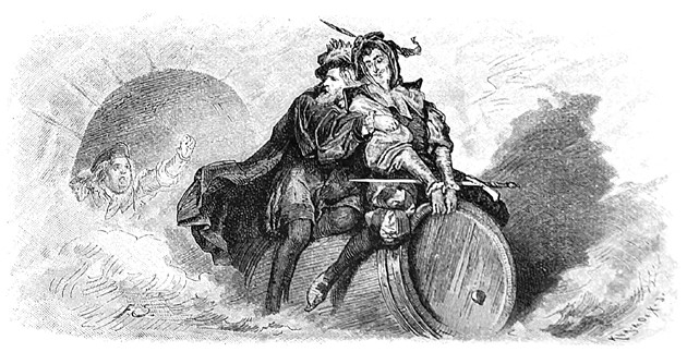 А я за твой схватился? Наважденье!АльтмайерКаков удар! Всего меня потряс!Подайте стул: я упаду сейчас.ФрошНо что же было тут, я спрашиваю вас?ЗибельГде этот молодец? Ну, встреться в одиночкуМне где-нибудь, так жив не будет он!АльтмайерЯ видел сам, как он вскочил на бочкуИ вмиг на ней верхом умчался вон.В ногах свинец: со мной недоброе творится.(Оборачиваясь к столу.)