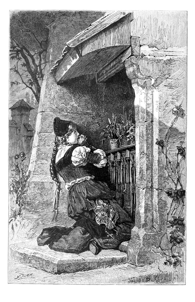 В нише стены статуя Mater dolorosa[13], перед нею кружки с цветами. Гретхен ставит свежие цветы.