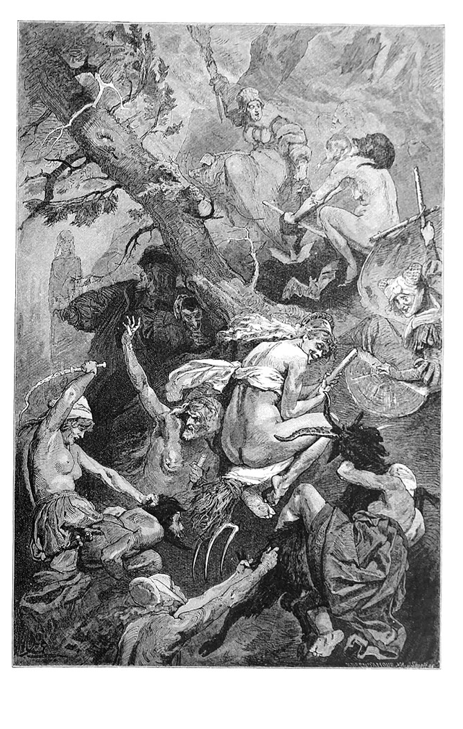 Это я! Да, это я!О, возьмите вы меня!Триста лет я здесь копаюсьИ к своим попасть пытаюсь.Оба хораНа вилах мчись, свезет метла,На жердь садись, седлай козла!Пропал навеки тот – поверь,Кто не поднимется теперь.Полуведьма(внизу)