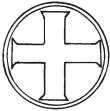 Нередко для указания на вселенское значение Креста Христова как микровселенной крест изображается вписанным в круг, символизирующий космологически сферу небесную. Традиционная для Византии форма креста.