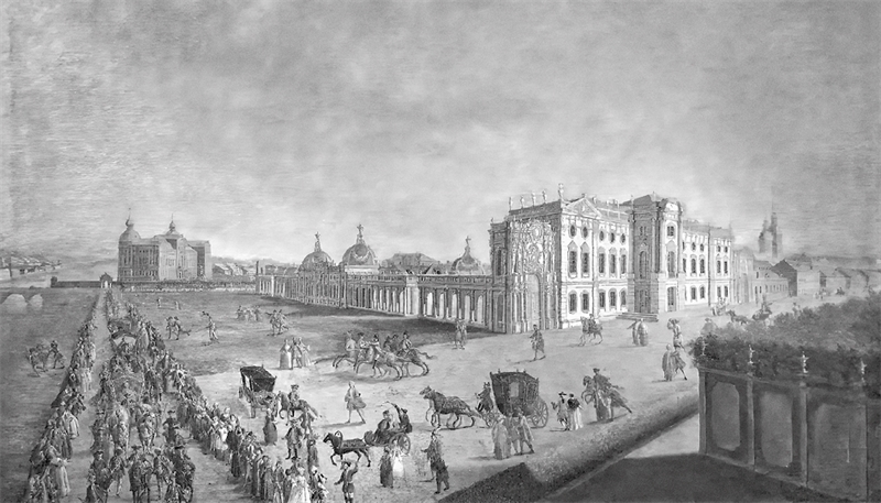 В огромной Российской империи в тот момент проживали около 18 миллионов человек, что тысячекратно превосходило население любого из немецких княжеств. Столицей империи был Петербург, город, основанный всего лишь сорок с небольшим лет назад, и еще, конечно, не до конца обустроенный. Он не шел ни в какое сравнение с уютным Штеттином. Привычных нам каменных набережных Невы и Мойки еще не было. Кое-где берега оставались топкими, где-то их подсыпали и спрямляли, сооружая деревянные мостовые.