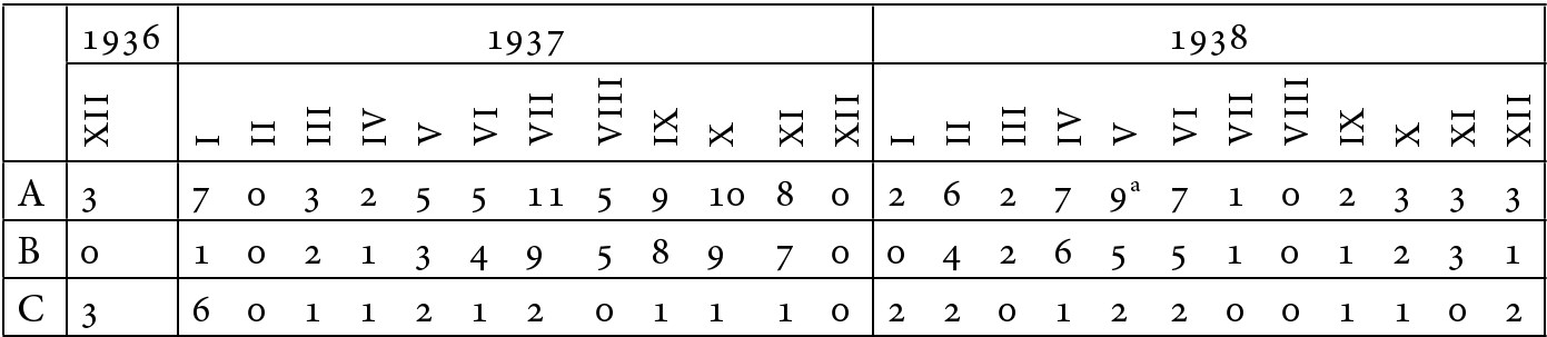 a Несовпадение общего итога с промежуточными показателями вызвано отсутствием данных о судьбе нескольких секретарей.