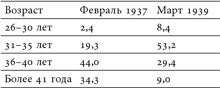 В возрастном отношении корпус секретарей после террора ожидаемо помолодел (см. таблицу 3). Если в 1937 году большинство составляли секретари в возрасте от 36 до 40 лет, а более трети переступили 40-летний рубеж, то в 1939 году эти показатели кардинально изменились. В результате кадровой революции более 60 % секретарей были молодыми людьми в возрасте до 36 лет.