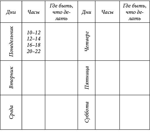 III. В «Недельное расписание» вносятся работы более или менее длительного характера – работа в кружке, личные доклады, присутствие на заседаниях, часы консультантской работы, время на подбор материалов или на подготовку к докладу и т. д., очередные же задания, как – приобрести такую-то книгу, прочесть такую-то статью в газете, посетить такого-то работника, навести справку о такой-то работе, проверить правильность такого-то факта и т. д., – вносятся в листок под общим названием – «Что мне надо сделать сегодня».